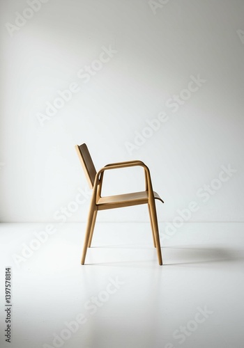 chair, sitting, wood, wooden, armrest, furniture, design, studio, still life, empty, simple, minimalist, indoor, interior, room, white, background, copy space, wall, floor, light, shadow, clean, style, nobody, home, office, modern, classic, minimal, neutral, toned, isolated, product, image, display, blank, view, single, object, studio shot, commercial, space, domestic, lifestyle, half face, daylight