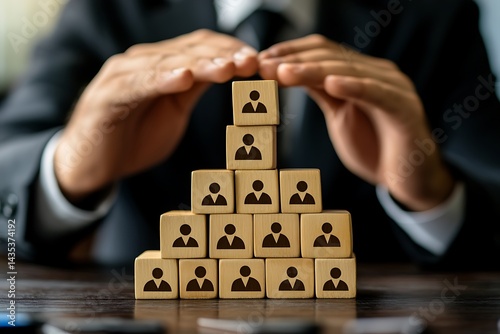 pyramid, wooden, cube, human, figure, hand, businessman, support, team, organisation, hierarchy, management, structure, stack, block, shape, toy, control, office, business, teamwork, leadership, achievement, career, success, group, company, strategy, employee, protection, security, care, insurance, risk, solution, symbol, signs, corporate, development, goal, plan