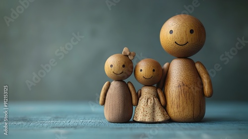 family, wooden, model, children, health care, concept, isolated, blue, background, three-dimensional, rendered, figurine, toy, design, minimalist, simple, cute, happy, friendly, together, support, care, well-being, education, upbringing