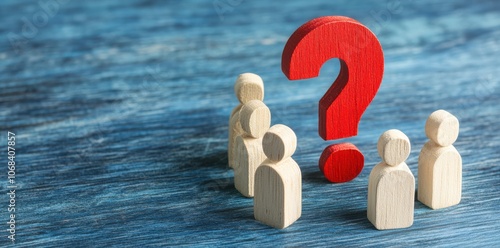 wooden, figure, people, red, question mark, blue, background, curiosity, researching, symbol, group, standing, texture, concept, idea, teamwork, discussion, decision-making, communication, collaboration, thinking, pondering, mystery, unknown, exploration, search, solution, challenge, brainstorming, meeting, gathering, interaction, blue background, symbolic, conceptual