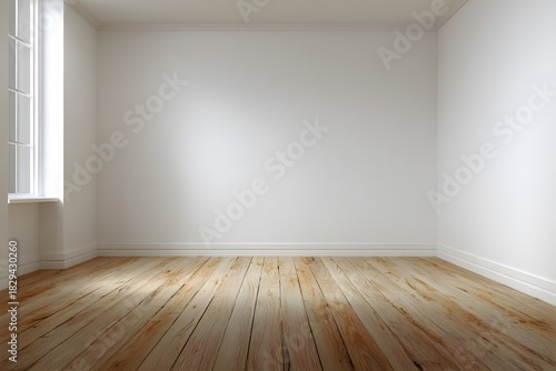 Wooden floor empty interior smooth painted wall minimal space for mockups