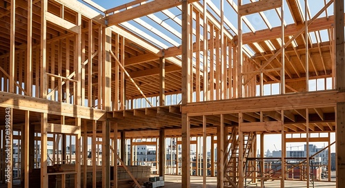 wood, frame, house, construction, building, residential, home, structure, timber, beam, wall, roof, floor, foundation, support, framework, skeleton, site, project, development, property, real, estate, architecture, design, engineering, blueprint, plan, material, timbering, nail, screw, fastener, tool, men at work, labor, industry, progress, growth, new, modern, contemporary, style, aesthetic, exterior, interior, space, room