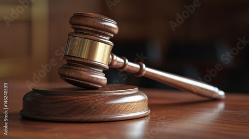 Wooden gavel on courtroom table
