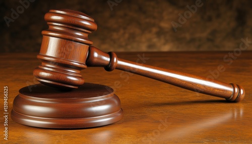 Wooden Gavel On Table In Courtroom For Lawyer: Symbols Of Justice, Law, Attorney, And Court Judge