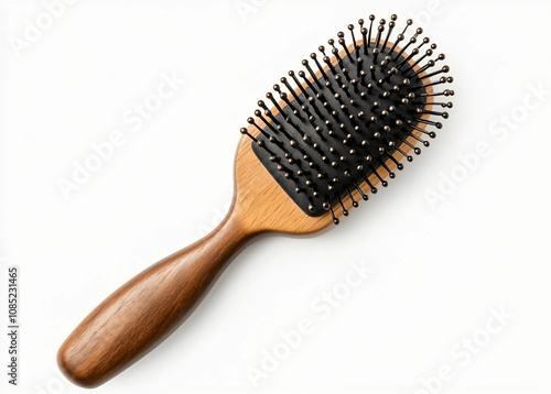Wooden Hairbrush Isolated on White Background Isolated on White Background for Styling and Hair Care, Brushing Hair, Comb for hair