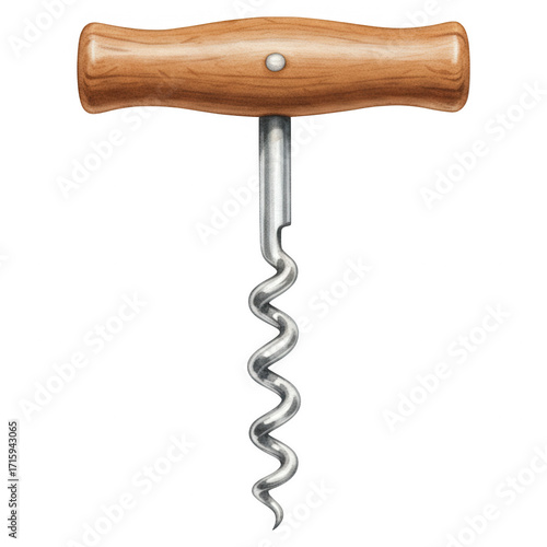 Wooden handled corkscrew with metal spiral worm isolate wine opener bottle opener