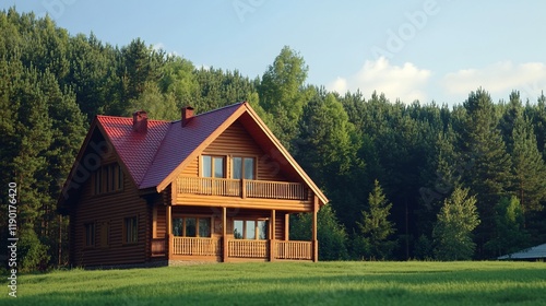 house, home, cabin, log, wood, bungalow, chalet, dwelling, residence, building, architecture, forest, tree, wood, nature, landscape, green, grass, field, sky, sun, summer, day, rural, scenic, property, real, estate, vacation, get-away, retreat, tranquil, peaceful, serene, idylli, beautiful, charming, comfortable, luxury, modern, contemporary, design, style, view