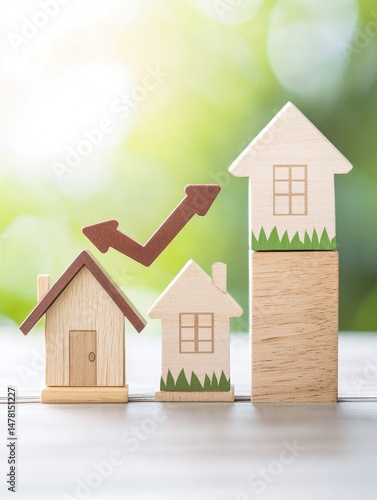 growth, investment, real estate, housing market, financial success, homeownership, architecture, statistic, home improvement, blurred background, wooden blocks, urban development, planning, increase, construction industry