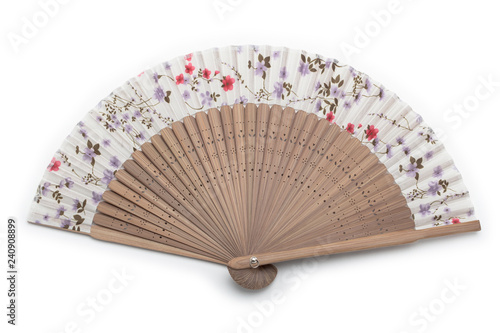 wooden korea hand fan on white background