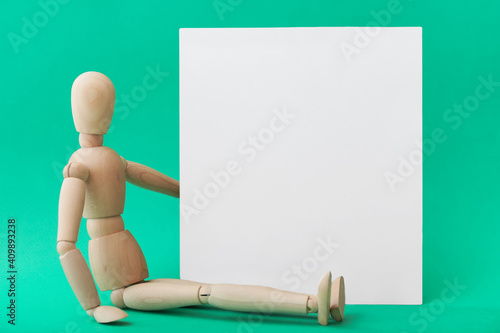 advertisement, announcement, background, banner, blank, business, card, colours, communication, concept, content, copy, design, doll, dummy, empty, figure, figurine, green, human, image, information, manikin, mannequin, marketing, message, model, note, object, paper, person, signs, poster, presentation, print, production, promotion, puppet, sale, sample, sheet, space, template, text, wooden