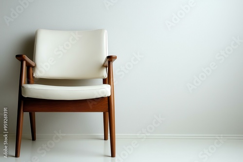 Wooden mid-century modern chair in minimalist living space