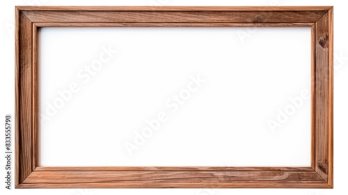Wooden oak landscape brown picture frame with an empty white blank canvas for use as a border, png file cut out and isolated on a transparent background.