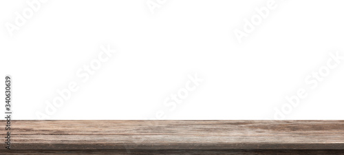 Wooden old tabletop isolated on white background empty rustic wood table,for montage product display or design key visual layout.with clipping path
