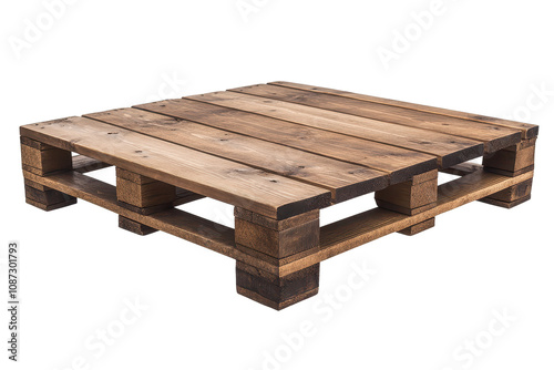 Wooden pallet from frt and angle view showcasing sturdy design for storage use