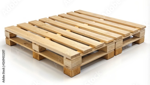 pallet, wooden, wood, timber, plank, slat, shipping, logistic, transportation, cargo, freight, delivery, supply, chain, industry, construction, material, handling, storage, isolated, background, white, object, square, rectangle, brown, beige, texture, grain, surface, structure, support, platform, stack, 2, multiple, horizontal, vertical, perspective, studio, product, light, shadow, clean, simple