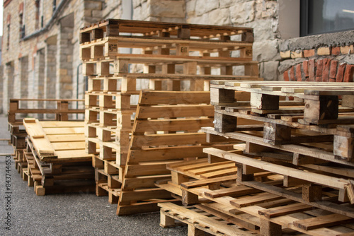Wooden pallets for the transport of goods.