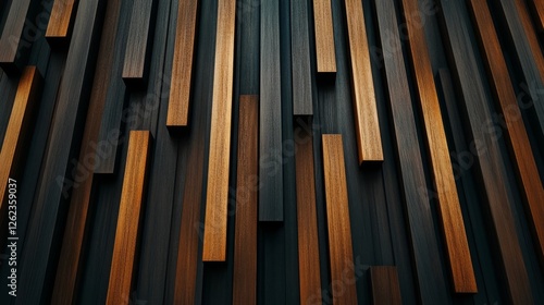 Wooden paneling creates a visually striking pattern of contrasting colors and textures in a modern interior setting