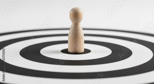 Wooden Pawn on Target, Representing Precision, Achievement, Goals and Focus in Business