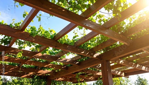 Wooden pergola with climbing vines
