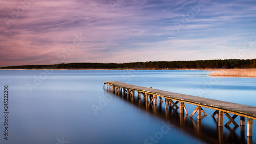Wooden pier on lake against sky