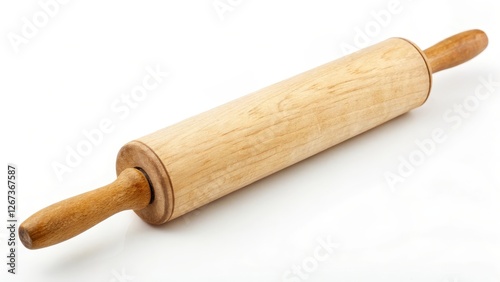 rolling, pin, wooden, wood, kitchen, tool, utensil, baking, pastry, dough, cooking, culinary, food, preparation, bake, bakery, domestic, household, appliance, equipment, white, background, isolated, studio, photo, image, object, texture, grain, brown, light, shadow, surface, handle, cylindrical, smooth