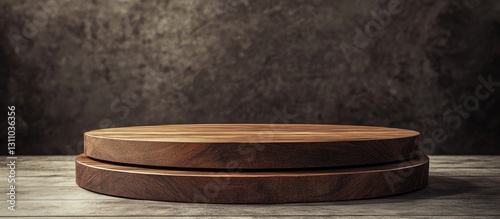 wooden, round, elegant, presentation, setup, dark, grey, background, textured, soft, lighting, foreground, decor, event, display, stage, design, interior, ambience, simplicity, modern, minimalism, professional, showcase, conference, art, beauty, clean, isolated, luxury, rustic, faith, speaker, workshop, corporate, exhibition, venue, gallery, creative, visual, aesthetic, craftsmanship, atmosphere, stylish, sophisticated, pattern, illumination