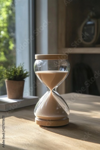 hourglass, wooden, sand, timer, pendulum, measurement, decorative, object, wood, grain, texture, tabletop, accessory, home, interior, design, sunlight, natural, light, view, modern, management, tool, minute, hours, hand