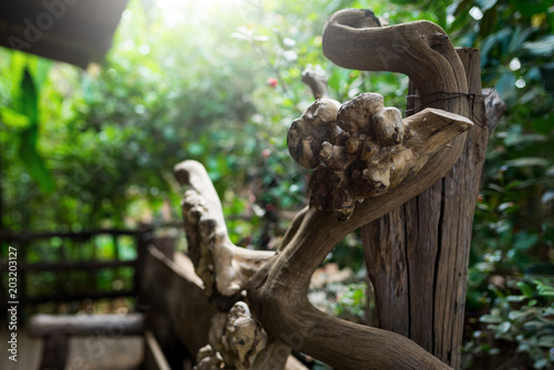 Wooden sculpture made of raw roots of Cambodian tree.