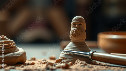sculpture, wooden, figure, bearded, artisan, tool, workshop, table, creative, detail, hand, design, craftsmanship, art, woodwork, carving, still life, male, nature, wood, material, textured, closeup, culture, hand-made, background, natural, labor, creation, skill, dedication, inspiration, focused, carpenter's shop, hobby, craft, scene