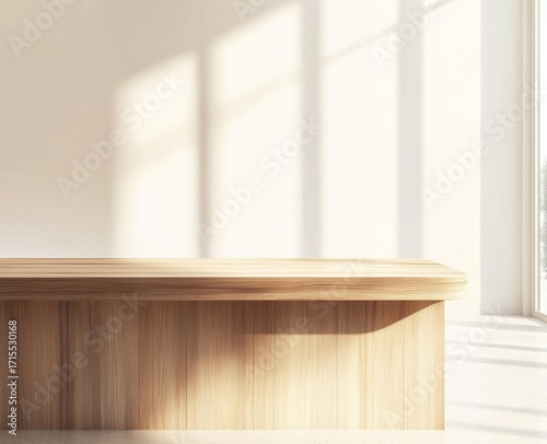 Wooden shelf in a sunlit room with natural light casting shadows on the wall