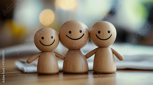 Wooden smile figures portraying a happy family dynamic on a table setting