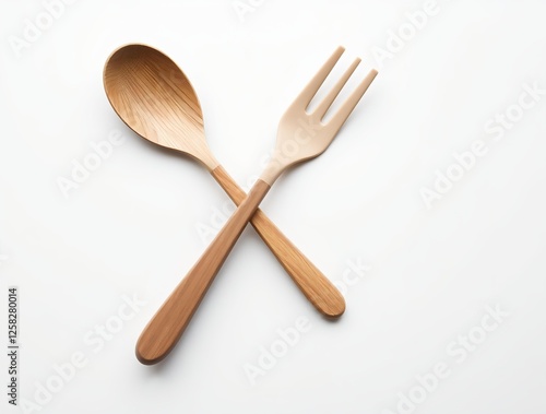 Wooden spoon and fork isolated on white background with clipping path
