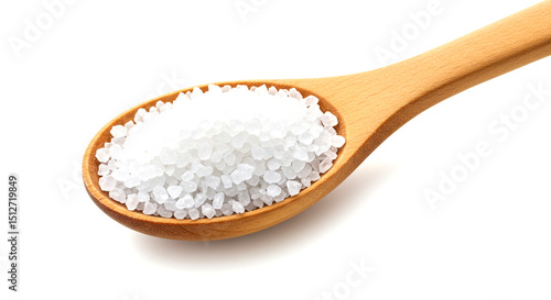 Wooden Spoon Filled with Coarse Sea Salt on White