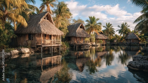 village, palm tree, water, reflections, nature, calmness, sky, sunlight, landscape, tropical, scenery, peaceful, community, greenery, rural, calm, serene, rustic, structure, shore, island, tour tourism, cultural, environment, traditional, hut, summer, blue, travel, adventure, holiday, escape, relaxation, idylli, ocean, beauty, waterfront