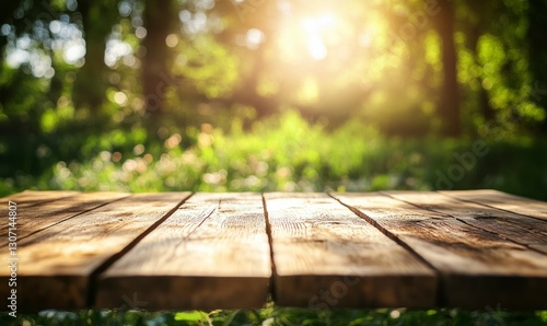table, wooden, standing, rustic, surface, plank, blur, outdoors, sunlight, sun, shining, bokeh, forest, tree, green, grass, meadow, background, nature, spring, summer, empty, space, display, advertising, template, product, presentation, copy, staging, wood, texture, natural, timberland, environment, calm, peaceful, day, park