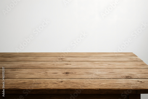 Wooden Table Surface: A rustic wooden table showcases its rich texture and natural grain against a clean backdrop, inviting viewers to envision possibilities