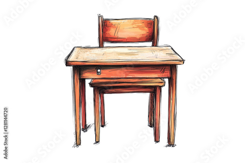 Wooden table with a unique design, white isolate background