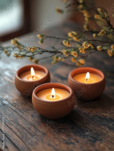 candlelight, wood, grain, table, setting, rustic, decor, three, small, candle, wooden, warm, glow, intimate, atmosphere, evening, ambience, home, cosy, comfort, relaxation