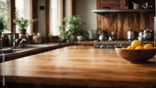 Wooden tabletop with a medical style with a fuzzy kitchen background