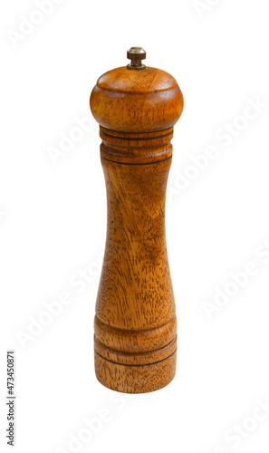 wooden textured mill pepper isolated on white background, clipping path kitchen utensil.