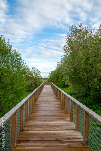 Wooden walk track in green park