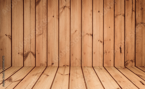 wooden wall and floor in perspective view background and texture