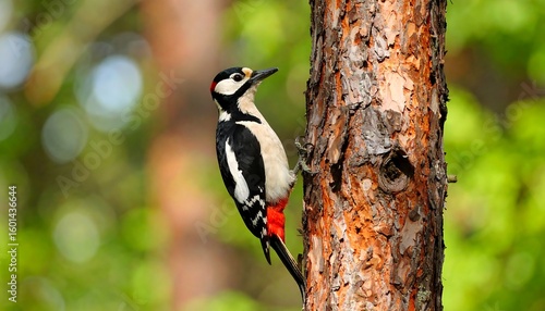 Woodpecker on a tree trunk