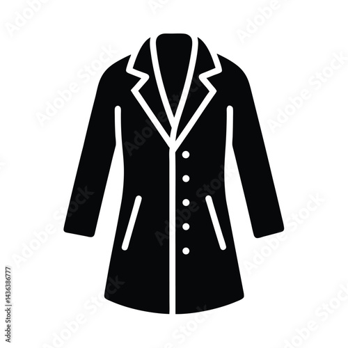 wool, coat, notch, icon, vector, illustration, outerwear, fashion, winter, style, woman, man, formal, classic, apparel, design, graphic, template, trendy, elegant, warm, casual attire, minimal, wear, outfit, drawing, creative, flat, design, editable, modern