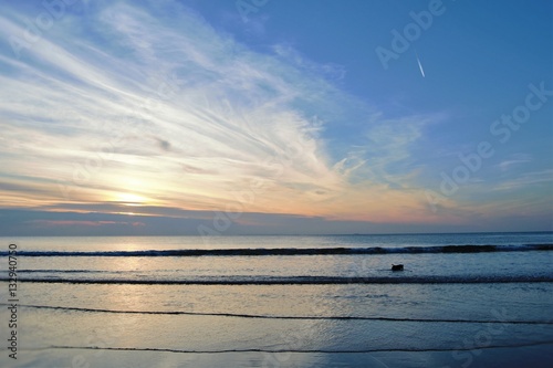 sunset, beach, sea, water, sky, silhouette