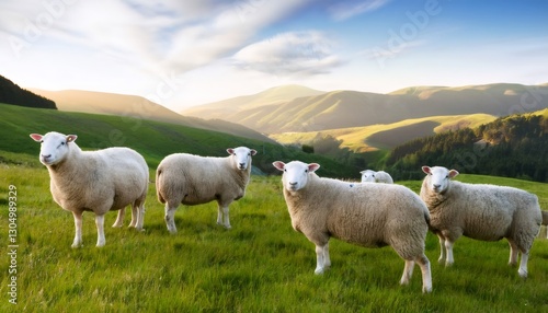 sheep, meadow, mountain, vale, landscape, pasture, grazing, flock, green, grass, nature, farm, agriculture, farm animal, rural, countryside, idylli, scenery, outdoors, animal, wool, farming, field, herd, blue, sky, cloud, sunlight, summer, spring, peaceful, tranquil, environment, ecology, sustainable, range, beautiful, sunny, day, white, farmland, hill, new