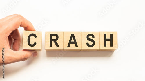 Word crash Wooden small cubes with letters isolated on white background with copy space available