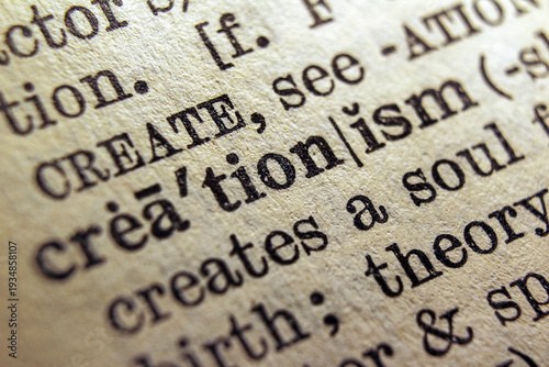 creationism, creation, theory, design, word, closeup, page, macro, controversy, ideology, dogma, faith, religion, science