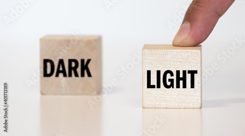 Word DARK and LIGHT on wooden block