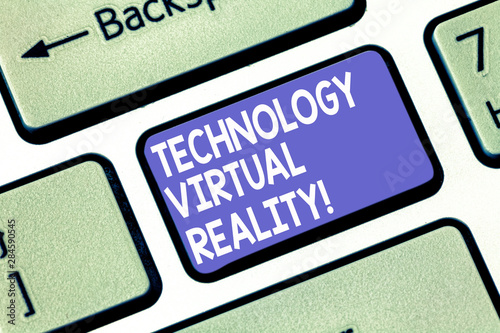 Word writing text Technology Virtual Reality. Business concept for interactive computergenerated experience Keyboard key Intention to create computer message pressing keypad idea